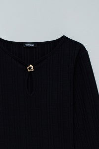 Esta jersey de punto fino acanalado es un esencial sofisticado para tu armario y destaca por el detalle de abertura en el pecho. El fit slim realza la silueta, garantizando un look femenino y moderno. Versátil e intemporal, es perfecta para cualquier ocasión.